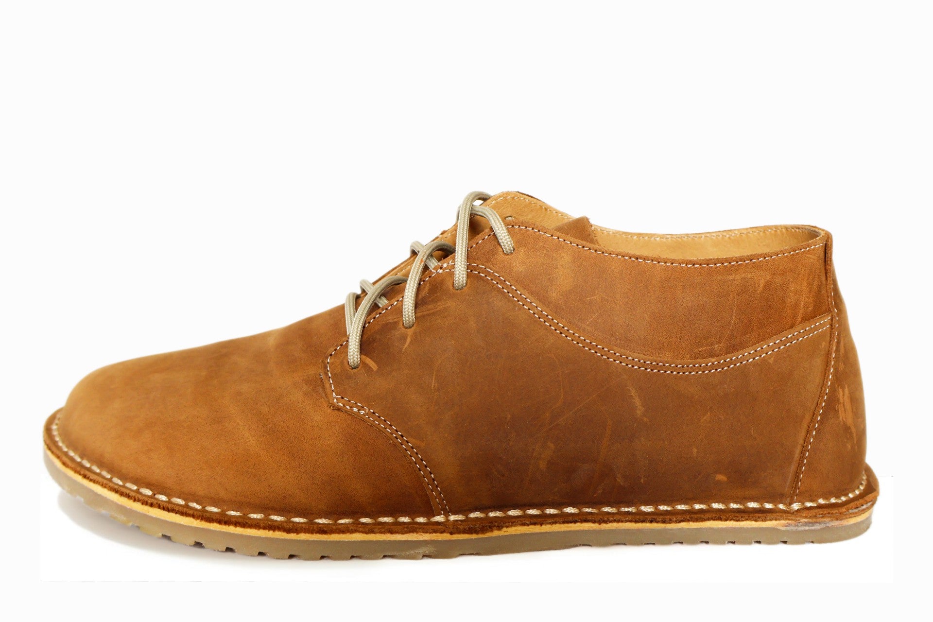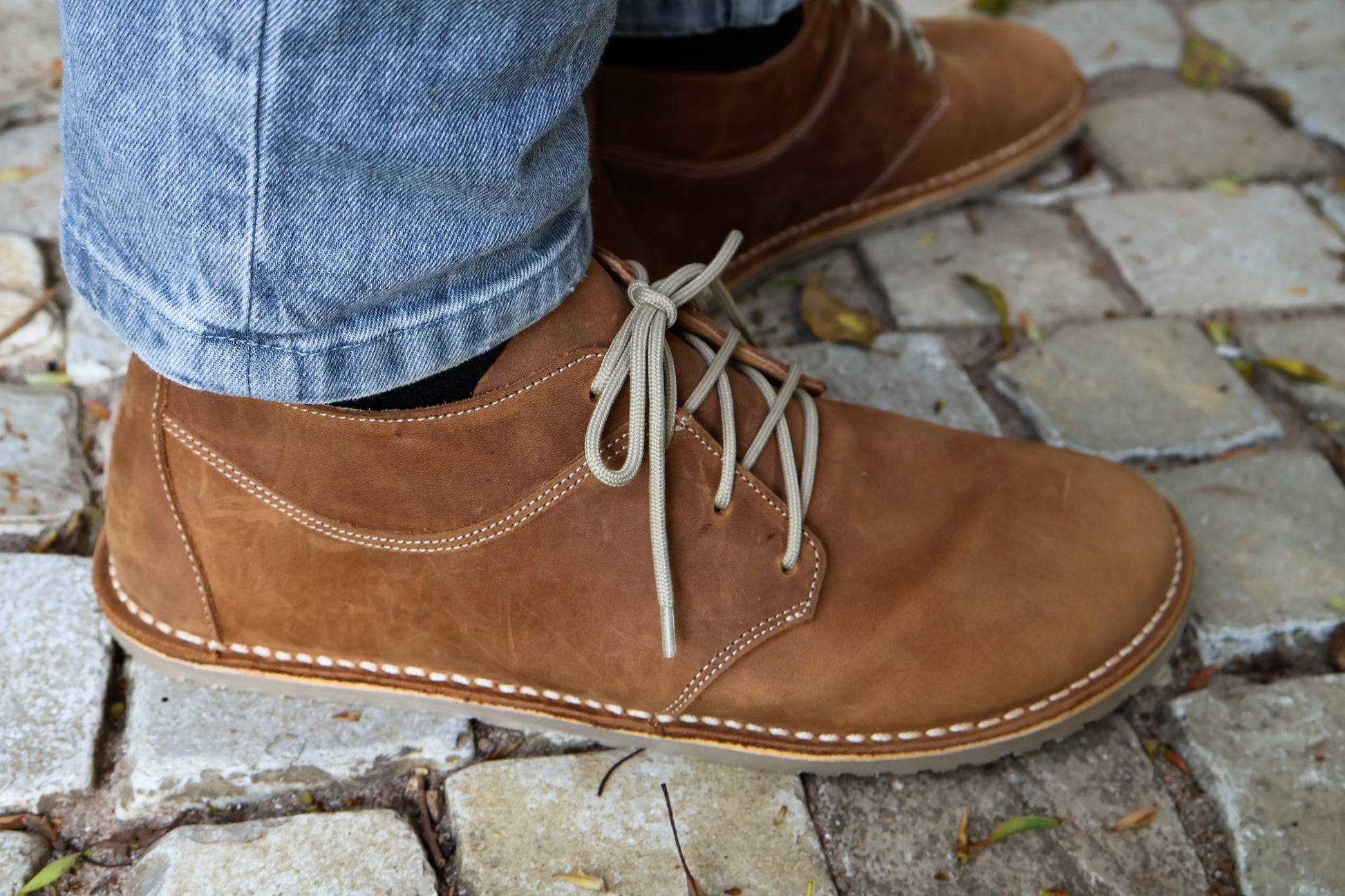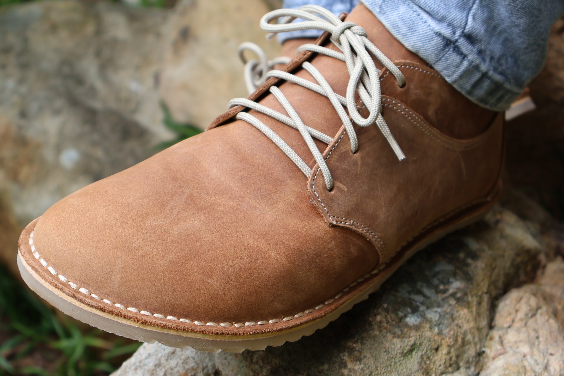 High-cut, lace up men's shoe perfectly styled for weekend and work wear. Made in South Africa designed with barefoot principles - zero-drop sole, 7mm TPR sole and wide toe box, made from full-grain chestnut brown leather. Comfortable, functional and stylish.