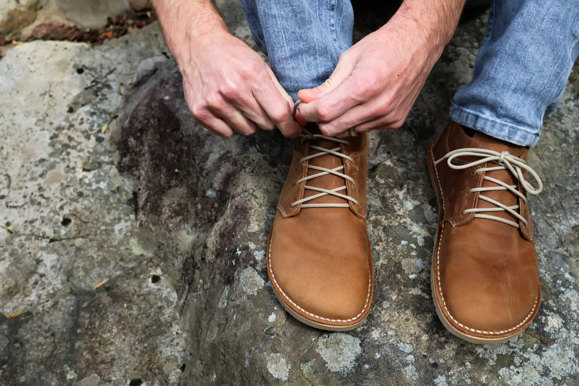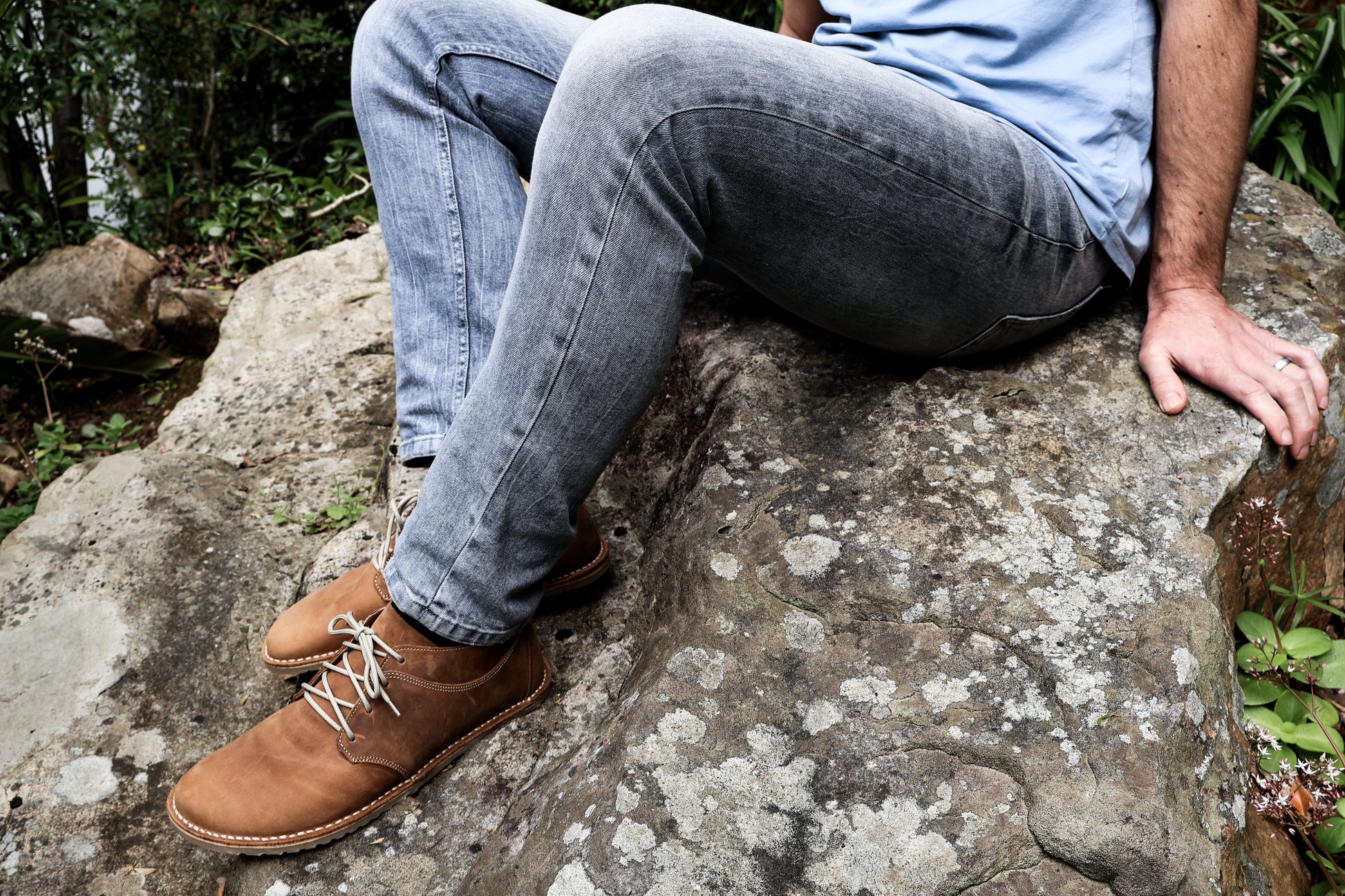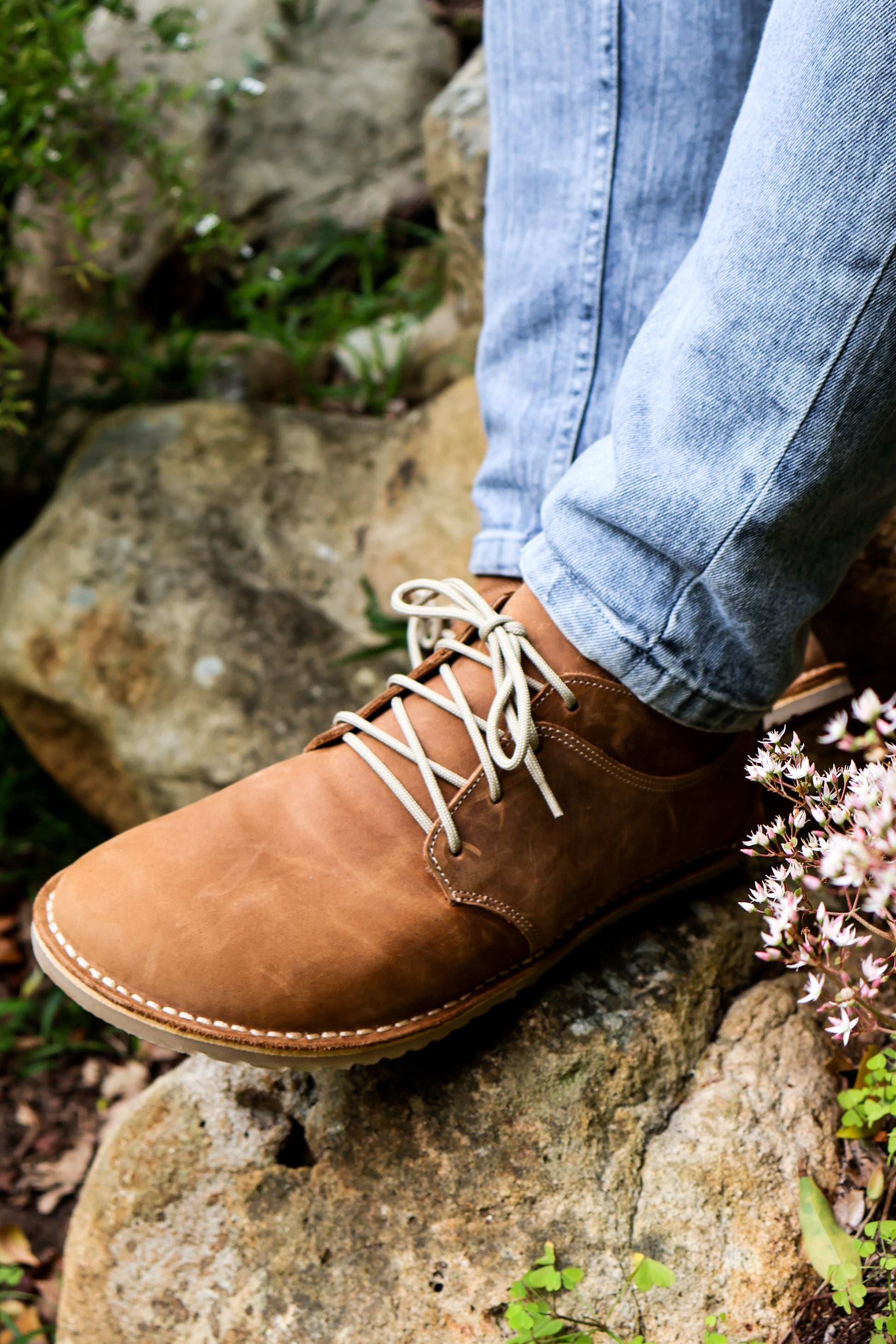 High-cut, lace up men's shoe perfectly styled for weekend and work wear. Made in South Africa designed with barefoot principles - zero-drop sole, 7mm TPR sole and wide toe box, made from full-grain chestnut brown leather. Comfortable, functional and stylish.